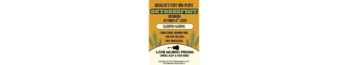 Come out to Quigleys Pint & Plate in Pawleys Island for Octoberfest! Enjoy traditional German fare, Live Music and lots of fun for the kids!