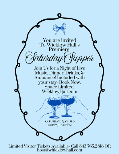 Join us for an intimate Premiere Saturday Supper at Wicklow Hall, where timeless charm and warm hospitality set the stage for an unforgettable evening.