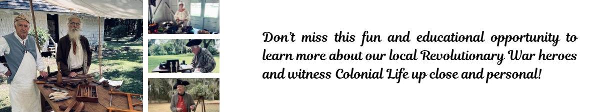 They will have their cabin open and in operation - all kitted out with rope beds and lanterns, cook pots, and other necessaries of colonial life. Don't miss the fun and educational opportunity to learn more about our local Revolutionary War heroes and witness colonial life up close and personal!
